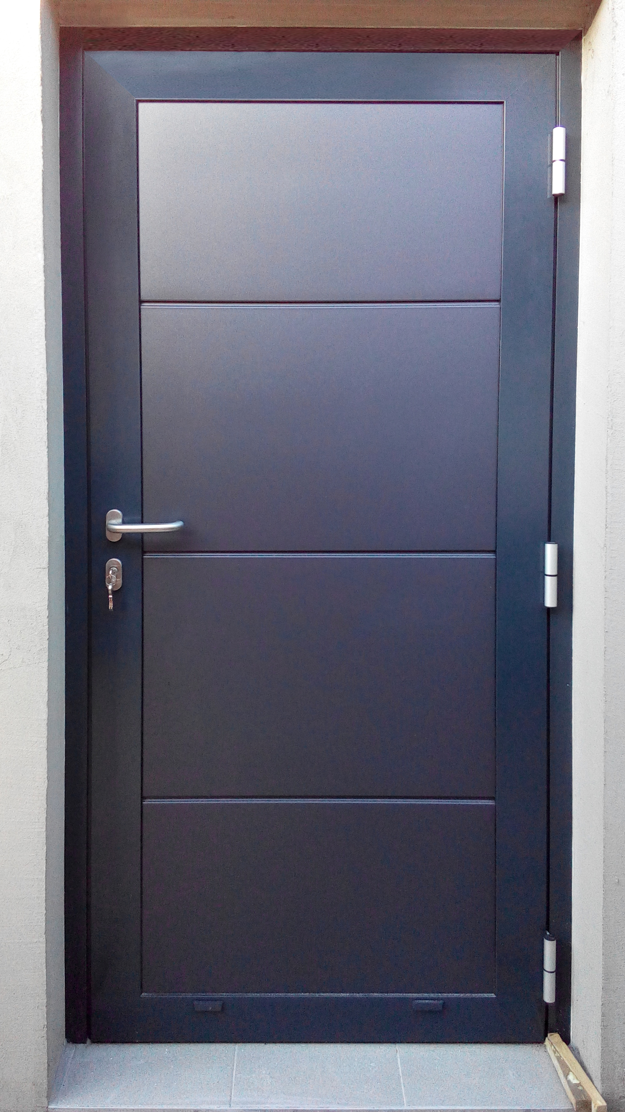 Vedlejší hliníkové dveře, výplň PUR 40mm, barva tmavá hnědá RAL 8014 oboustranně , rozměr 1000x2150mm, Levé